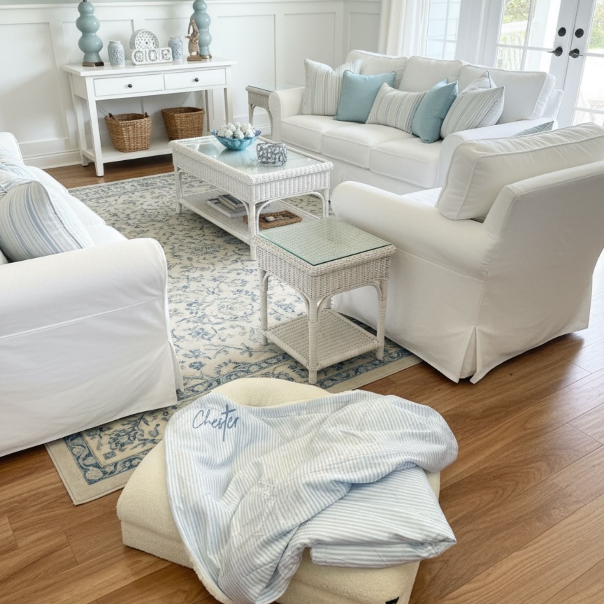 Checkered blue custom dog blanket